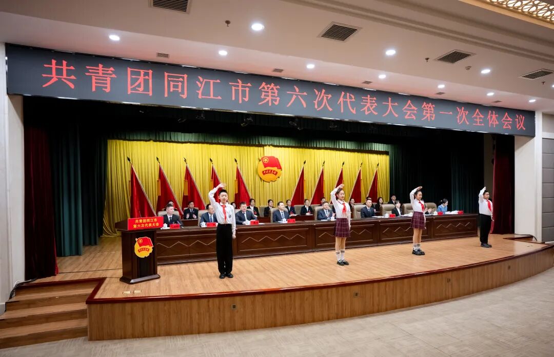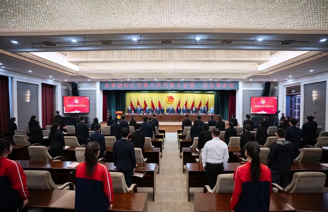 上午9时30分,大会正式开幕,全场高唱国歌。少先队员代表向大会献词;市妇联负责同志代表群团组织致贺词;团市委主要负责同志代表共青团同江市第五届委员会作报告。