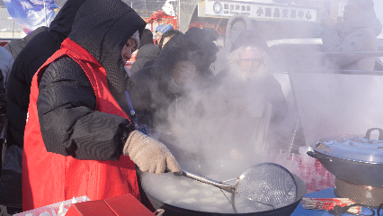 活动现场,暖意与鲜香交织,人气爆棚、烟火气十足,工作人员正忙着为市民送上各类特色美味,现煮的鳇鱼水饺皮薄馅大,鲜嫩多汁,尽显江鲜珍馐的独特口感;一旁的铁锅炖江鱼咕嘟作响,鱼肉吸饱汤汁,紧实Q弹,尽显东北江鲜风味;熏鱼、熏鳇鱼肉肠香味浓郁、越嚼越香;旁边的刺五加茶更是清新解腻、无限续杯,游客们一边品尝,一边向工作人员咨询产品的购买渠道,言语间满是对江城美食的好奇与喜爱。
