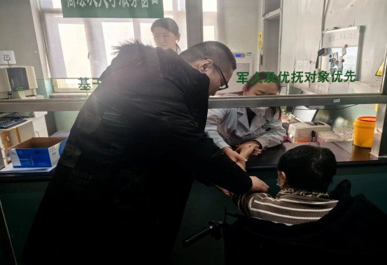 抽血检查环节,老人因紧张、害怕出现情绪波动,驻村第一书记化身“暖心陪伴员”,全程守在身边安抚鼓励。“贾大娘,别紧张,就轻轻一下,很快就好了,我陪着您呢!”工作队员在后面扶着身体,一边轻声安慰,一边帮她卷起衣袖、调整坐姿,全程搀扶、细心照料。“从前自己来医院,光挂号就晕头转向,现在有工作队的同志全程陪着,抽血、拿药一条龙服务,真是省了太多心!”抽完血、拿到药品的贾大娘,对着驻村工作队连连道谢。